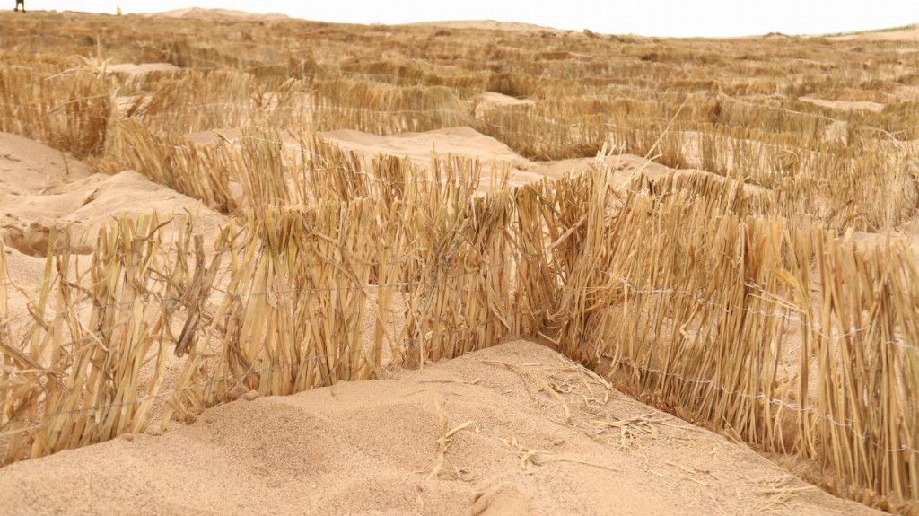 抵达沙地后,实践团成员在专业治沙技术人员的指导下,学习科学治沙理念与实操方法,深刻领会方格沙障固沙技术的原理。随后,志愿者们有的弯腰搬运成捆的稻草材料,有的将稻草插入挖好的沟槽,有的俯身用沙土仔细填埋压实。汗水浸透了衣衫,手掌磨出了薄茧,但没有一名队员停下脚步。随着一排排规整的方格沙障在裸露沙地上不断延伸,原本随风流动的松散沙土被牢牢“锁住”。这些由青春双手搭建的“沙障卫士”,不仅筑起了物理层面的防风固沙屏障,更凝聚着青年一代守护生态的坚定信念,彰显着“三北精神”在新时代的生动实践。